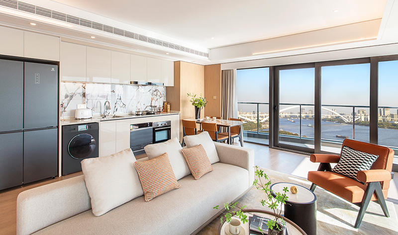 西岸中環匯服務公寓于2023年底開業,由香港置地打造,內部裝修簡潔時尚,擁有多種戶型可選,家具及電器齊全。緊鄰徐匯濱江,有一線江景。